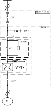 此方案為一拖一的典型方案,QS1、QS2為隔離開(kāi)關(guān)。隔離柜作用:方便檢修時(shí)有明顯的斷點(diǎn),確保人身和設備的安全。